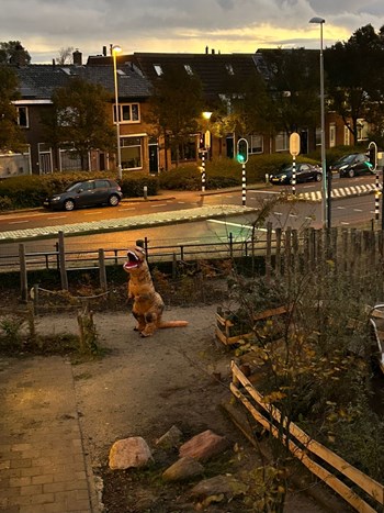 Vandaag hebben we een mysterie opgelost! We hadden bezoek van een dino op het schoolplein. En de camera’s van school hebben deze opgenomen! We hebben het terug gekeken en ja hoor.... een dino. De kinderen hadden het al snel door, dit is een pak!
