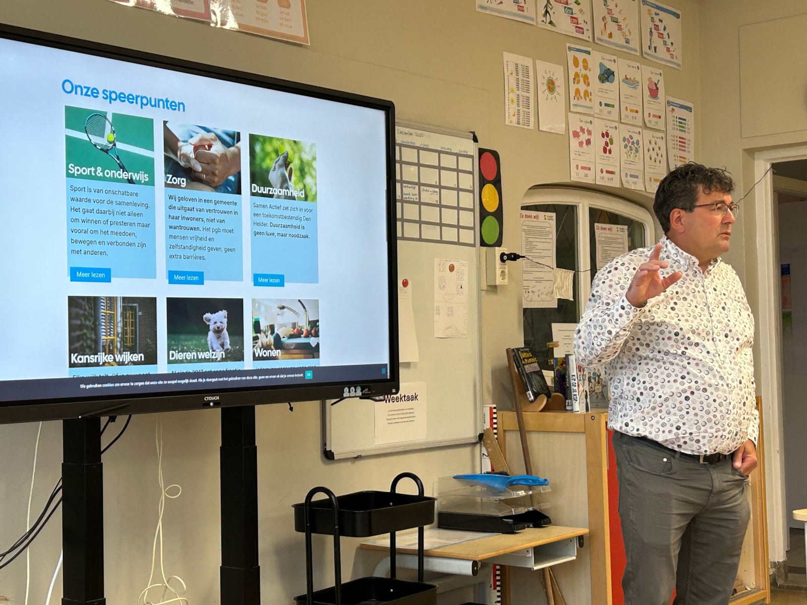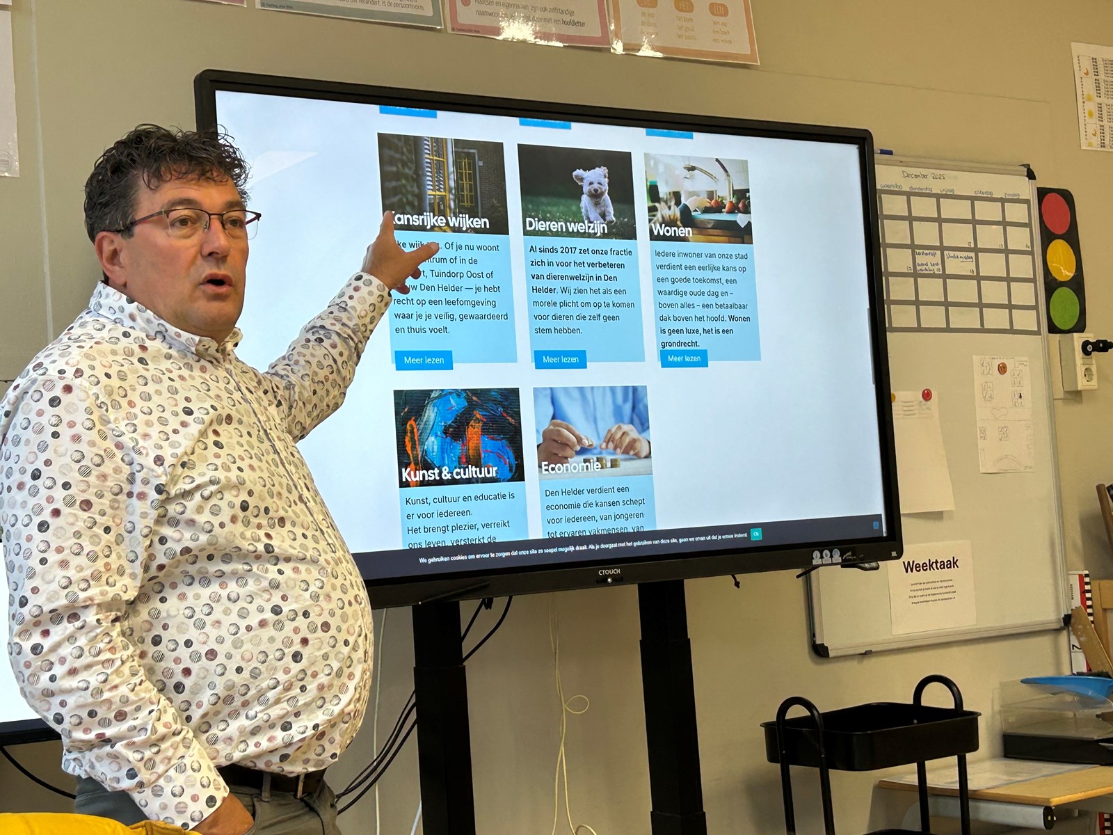 Hij kwam ons vertellen over zijn weg naar een eigen politieke partij en alle aspecten die daarbij komen kijken. Ook wilde Kees graag weten waar wij op school mee bezig waren. De leerlingen zijn namelijk bezig met het opzetten van een eigen politieke partij. Hierbij moeten zij campagne posters maken en campagnefilmpjes. Uiteindelijk gaan we ook een klein debat houden. In een later bericht nemen we u hier volledig in mee. Dan delen we ook de posters en de filmpjes met u.