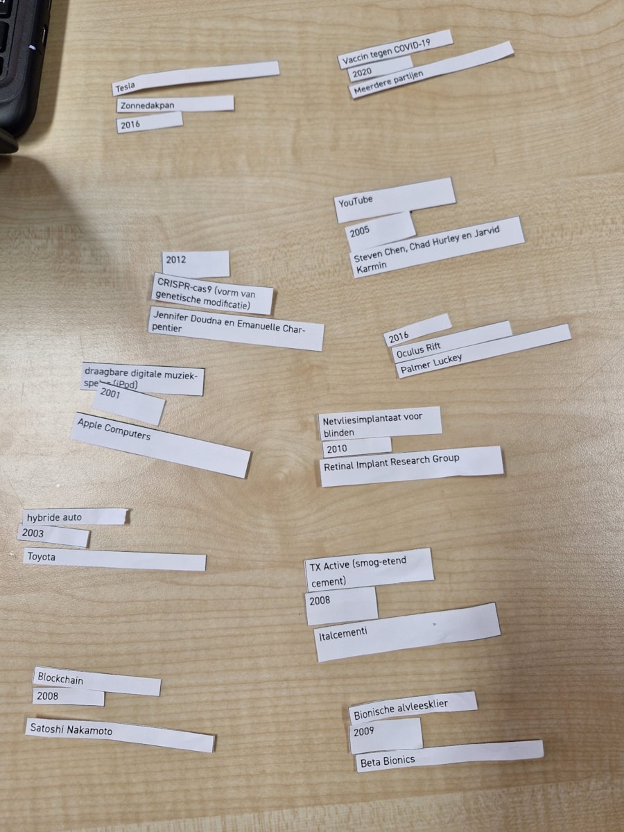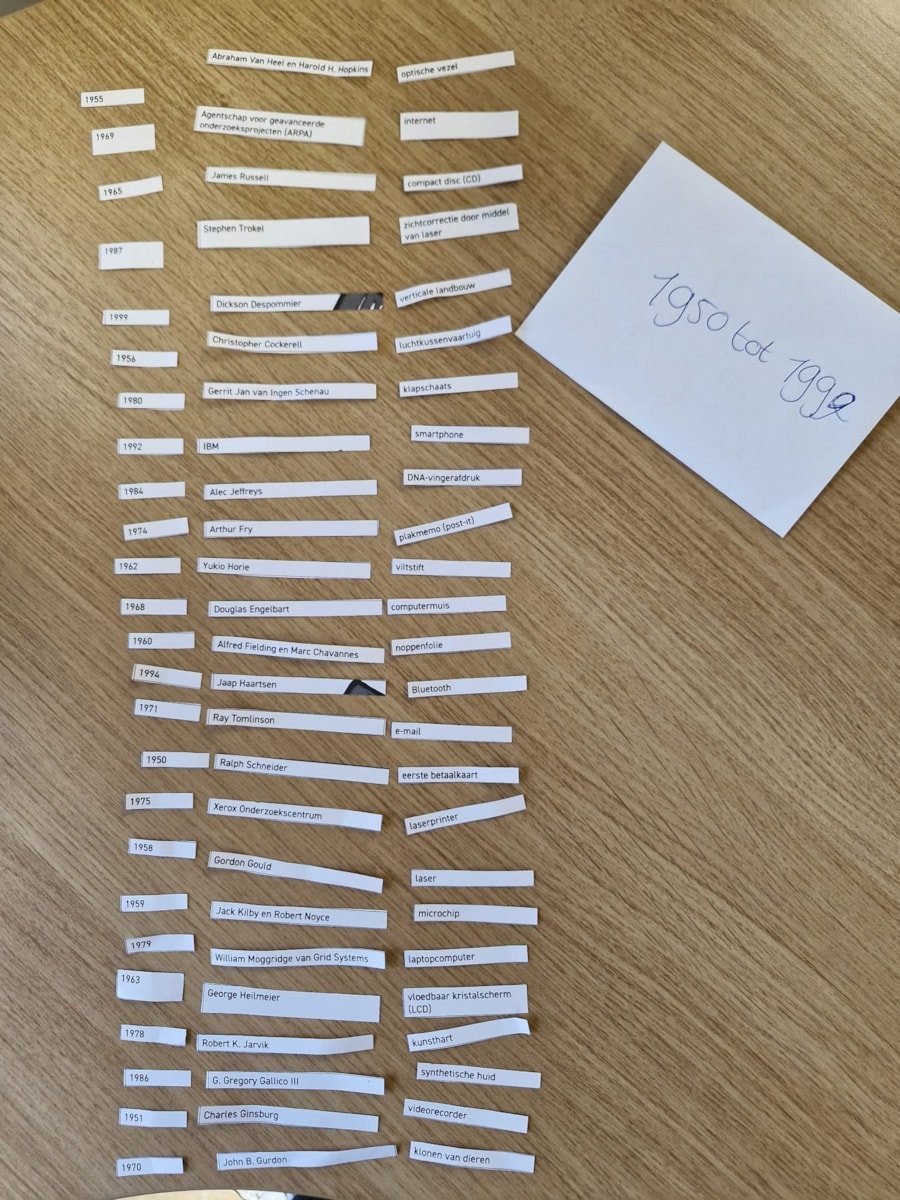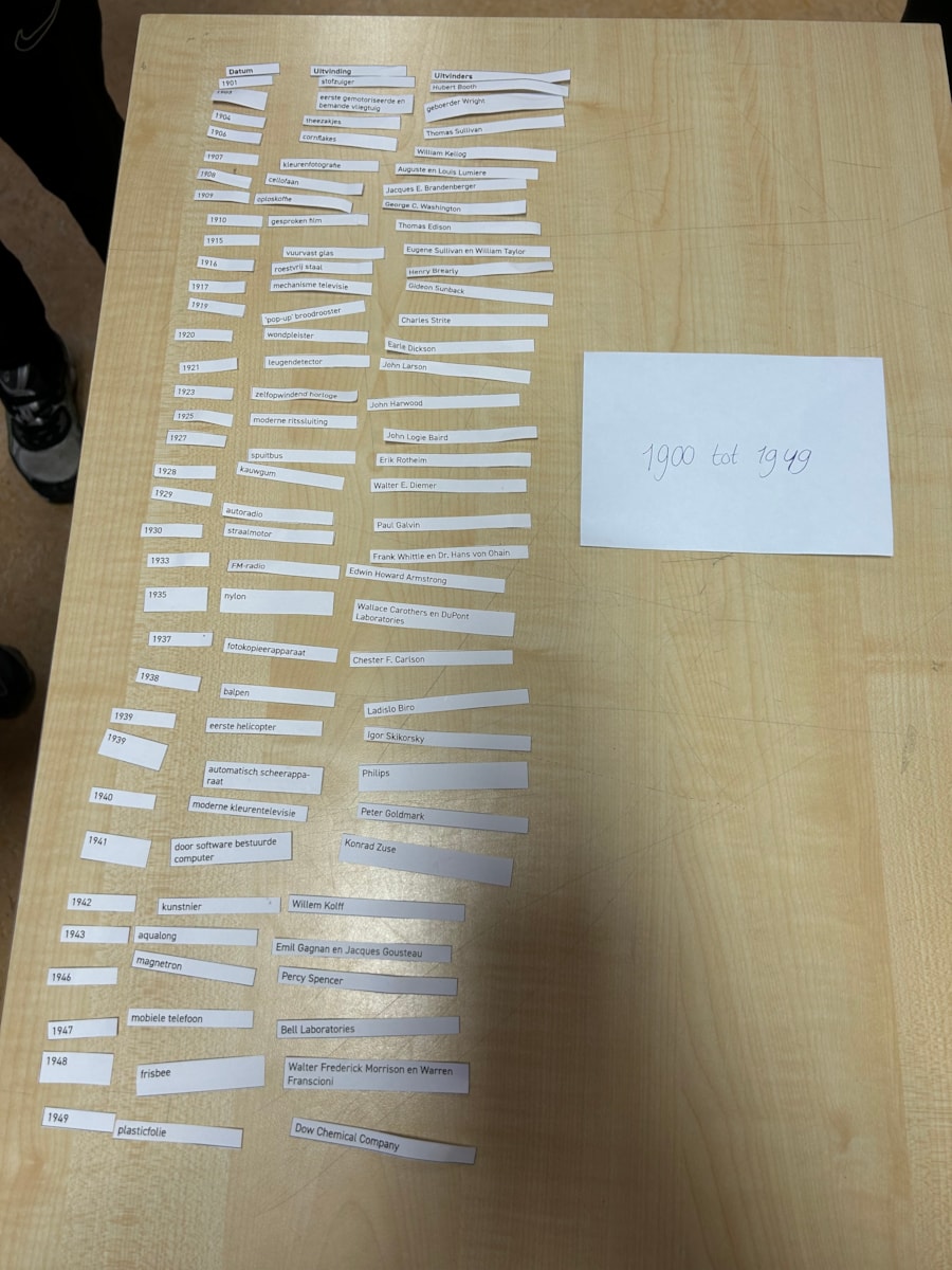 Het was niet de bedoeling dat alles goed zou liggen. Het ging er om dat je taken moest verdelen en samen moest werken in de koppeling van de onderdelen. Beargumenteren waarom een jaartal bij een uitvinding zou kunnen passen en welke uitvinder dit bedacht zou kunnen hebben.