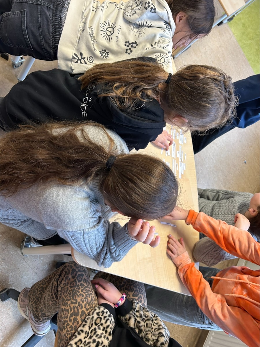 U raadt het al, de keuze werd een team vormen met vrienden/vriendinnen. En dan raadt u ook al hoe de opdracht ging: gezelligheid en spelen. Dit resulteerde voor een groepje in het 3 keer opnieuw moeten doen van de opdracht voordat we er een foto van konden maken. Elk groepje heeft een evaluatie gehad met de leerkracht na het maken van de opdracht.