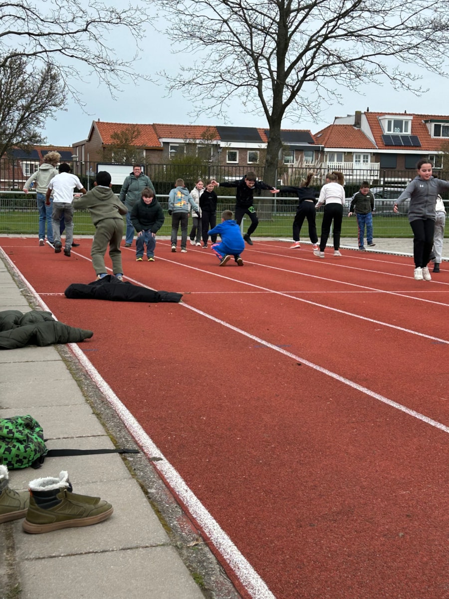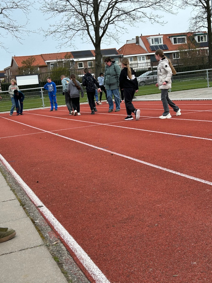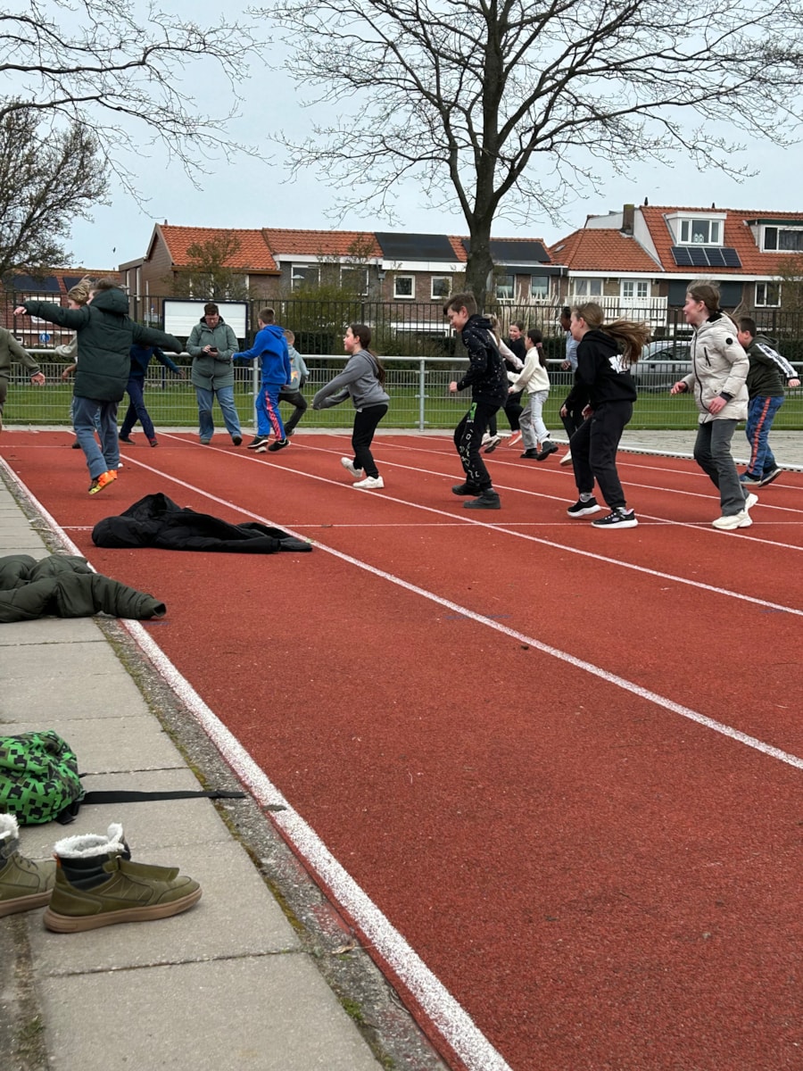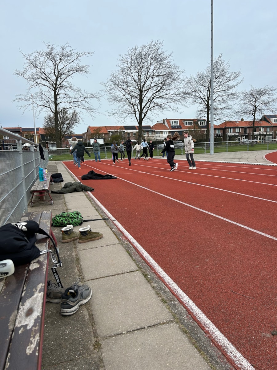 Hardlopen op de verschillende meters. Vrijdag 17 april staat de volgende les gepland. Hopelijk met mooier en warmer weer 🌞
