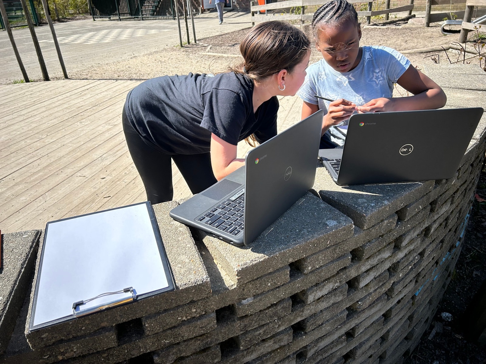 Voor IPC gingen we naar buiten vandaag. We moesten een foto maken met onze Chromebook. Hierbij moesten we extra voorzichtig zijn want Chromebooks zijn erg duur als ze stuk gaan.