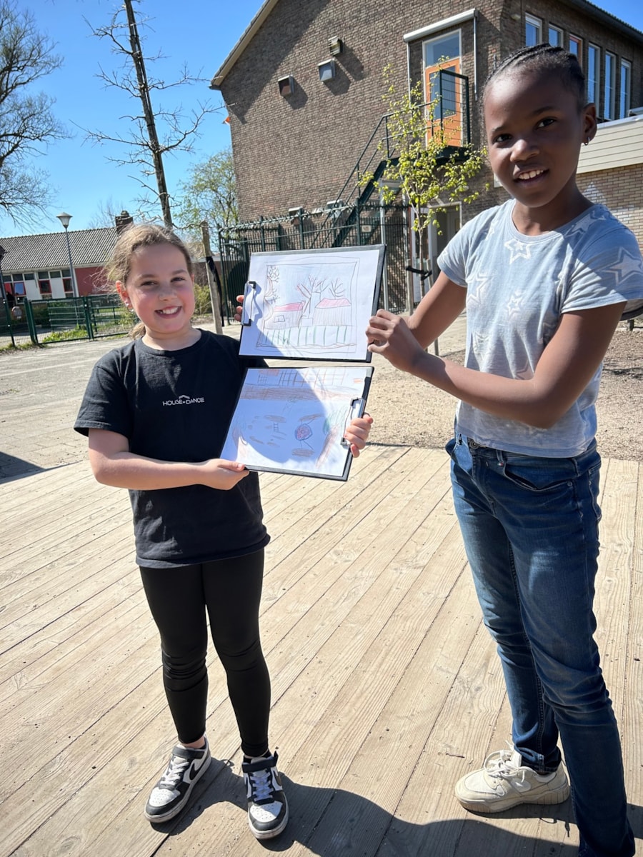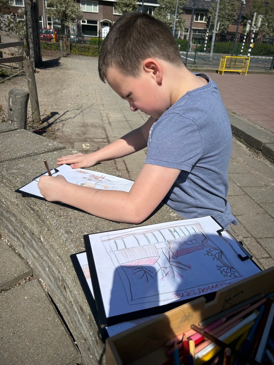 Vanuit de foto moesten we een schets maken met kleurpotlood. Hij hoefde niet perfect want het is de eerste keer dat we vanaf een foto een schets maken. Morgen gaan we een verftekening maken van de foto.