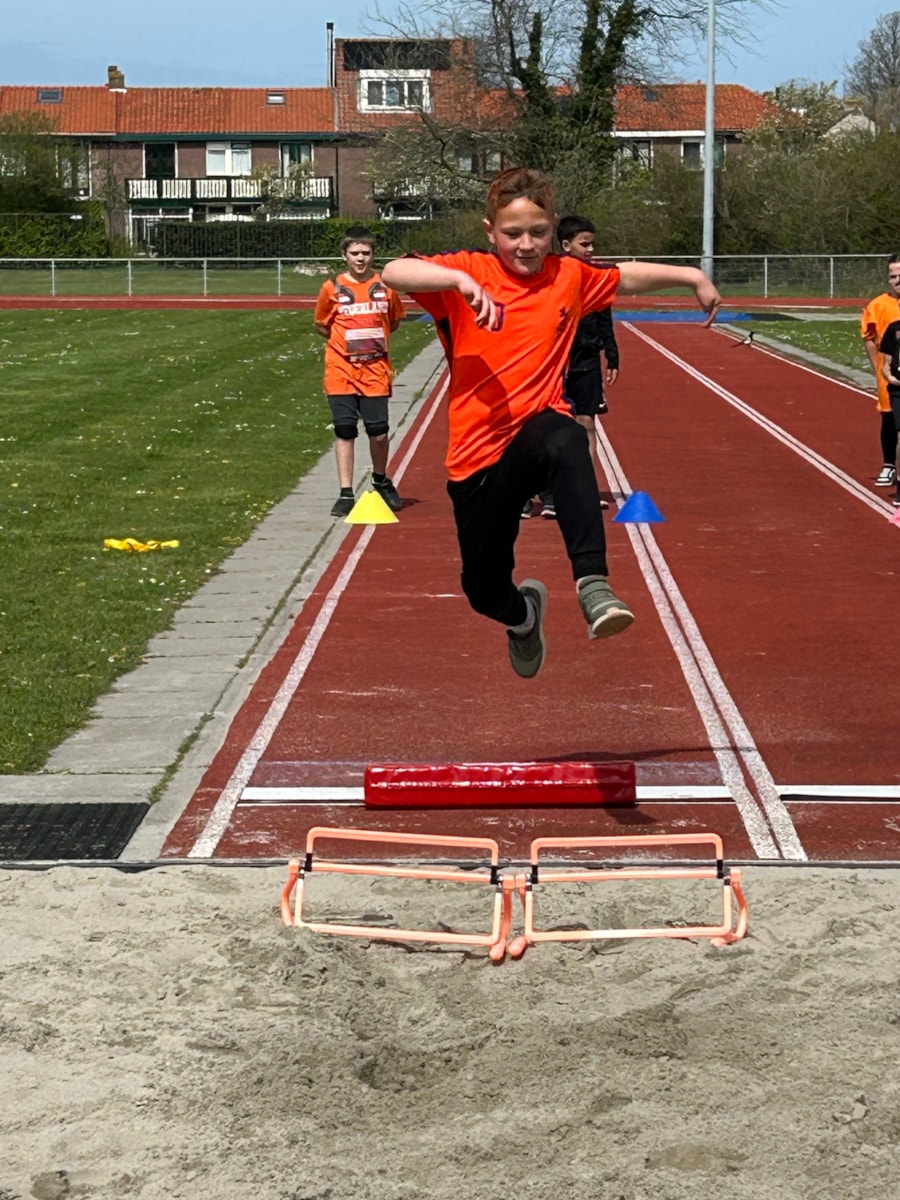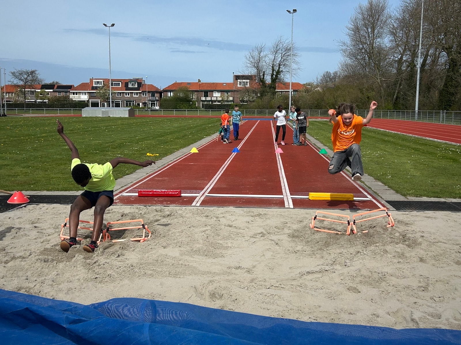 Vandaag stond de tweede les op het programma. Onder leiding van Samantha en haar medetrainer gingen we weer de baan op. We begonnen met warmlopen. Daarna gingen we in twee groepen uiteen: kogelstoten en verspringen. Het was heerlijk weer om lekker te sporten. We sloten de les af met een estafette.