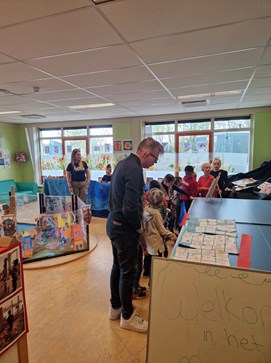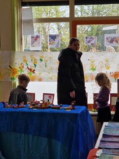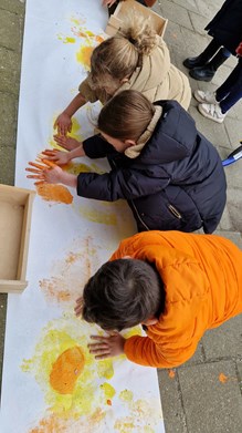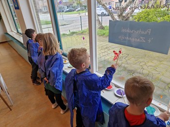 Thema kunst in groep 1/2 In februari begonnen wij met het thema kunst. We leerden over verschillende kunstenaars en maakten kunst voor in ons eigen museum. We bespraken de zonnebloemen van Van Gogh en de waterverf van Monet. We sloten af met een echt museum waar onze ouders, grootouders en andere belangstellenden een bezoek konden brengen. Om beurten zaten we achter de kassa, scheurden kaartjes door en gaven rondleidingen.