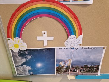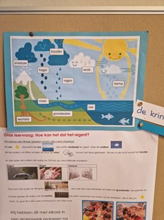 Het laatste thema van dit schooljaar gaat over water. Waar hebben we water allemaal voor nodig? Waar vinden we water? Welke vragen hebben wij over water? Water kom je overal tegen en we kunnen niet zonder. Het valt als regen uit de lucht, we drinken het net zo als de planten en dieren. Ook maken we ons zelf schoon in het water, badderen en douchen. We hebben veel proefjes gedaan met water. We zagen hoe stoom omgezet werd in waterdruppels, we ontdekten welke dingen blijven drijven en welke zinken en we proberen vlotten te bouwen die drijven. Water is natuurlijk ook gewoon leuk om lekker mee te spelen, zowel binnen in de watertafel als buiten met bellenblaas, tekenen op tegels en de bootjes laten varen in de Wadi.
